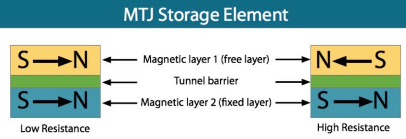 圖三:MRAM磁隧道結(jié)(MTJ)存儲(chǔ)元件[3]