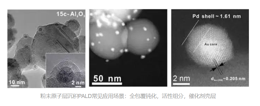 通過粉末原子層沉積PALD 技術(shù),可以實(shí)現(xiàn)催化劑粉末材料表?的涂層或活性位點(diǎn)制備。?論是在化?品催化或典型的制氫 / 燃料電池中以及納?級(jí)催化劑存在燒結(jié)或者浸出問題,使? ALD 技術(shù)都可以在典型的如 Pd / Al2O3 催化劑表?構(gòu)筑涂層,可避免催化劑的燒結(jié)與浸出,從?使實(shí)現(xiàn)穩(wěn)定的芳烴氫化反應(yīng)。