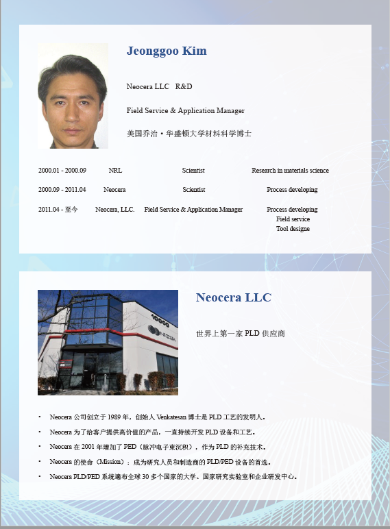 脈沖激光沉積(Pulsed Laser Deposition)是一種用途廣泛的薄膜沉積技術(shù)。脈沖激光快速蒸發(fā)靶材,生成與靶材組成相同的薄膜。Neocera是世界領(lǐng)先的脈沖激光沉積系統(tǒng)(PLD)/脈沖電子束沉積系統(tǒng)(PED)系統(tǒng)制造商,為薄膜制備提供全方位解決方案。