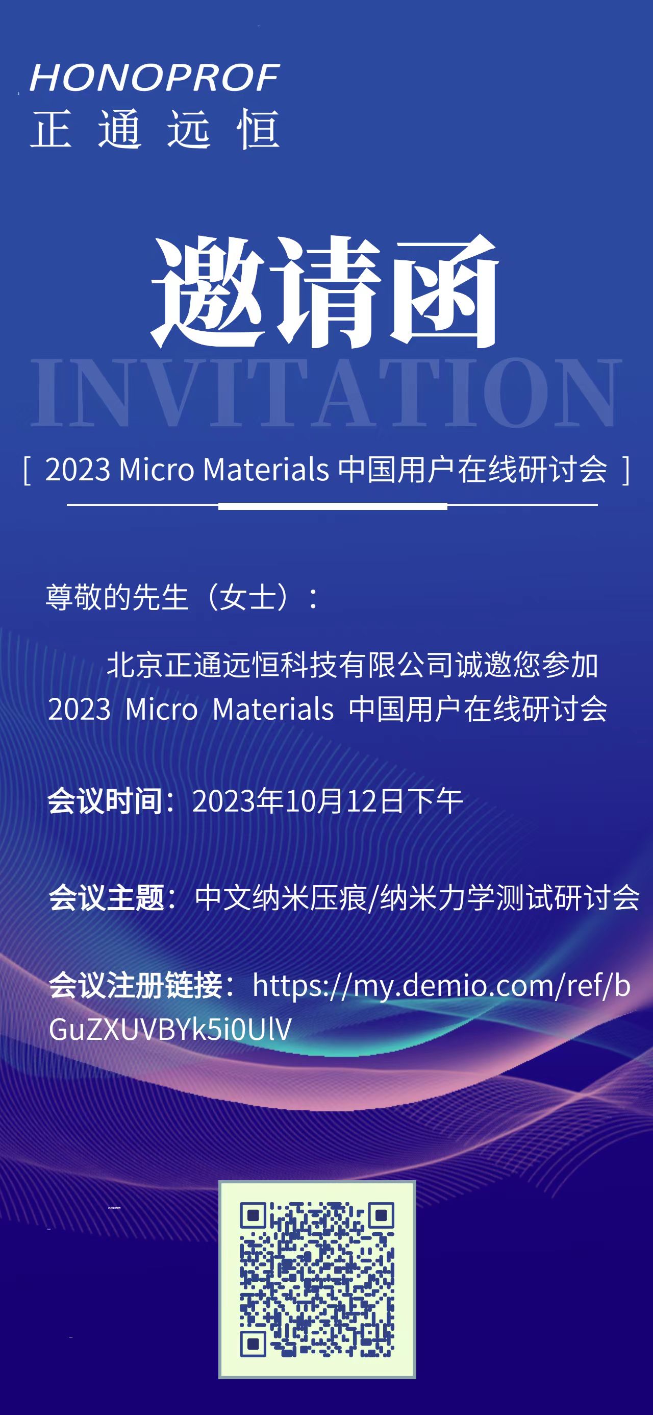 112024-04 第八屆海內(nèi)外中華青年材料科學技術(shù)研討會暨第十九屆全國青年材料科學技術(shù)研討會將于2024年4月19-22日在陜西省西安市召開,北京正通遠恒科技有限公司將參加展會,展臺號3-10,歡迎新老客戶蒞臨指導。